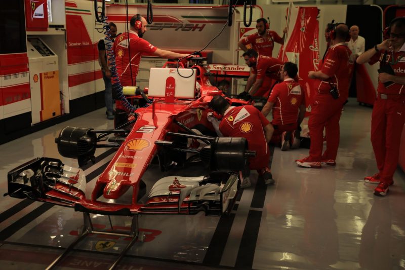 Both the Mercedes drivers are on their out-lap, the Ferrari’s are now making their way onto the track.